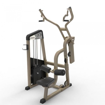下拉训练器SH-G5801锻炼方法:调整配重和座椅,双手握住把手,拉下时呼气,把手接近身体时上胸迎合把手,肘关节锁住背肌,顶峰收缩稍停留,缓慢回收,重复以上动作即可。