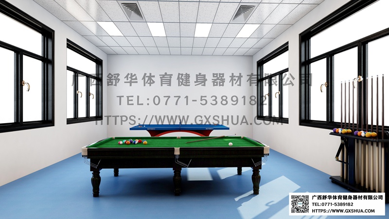 9.台球桌*1台-单位健身房配置台球桌,为员工的业余生活增添了乐趣和选择。与传统的健身器材锻炼相比,台球具有更强的娱乐性和趣味性,能够吸引更多员工参与到健身活动中来,提高健身房的使用率,让员工在工作之余有更多放松身心的方式。