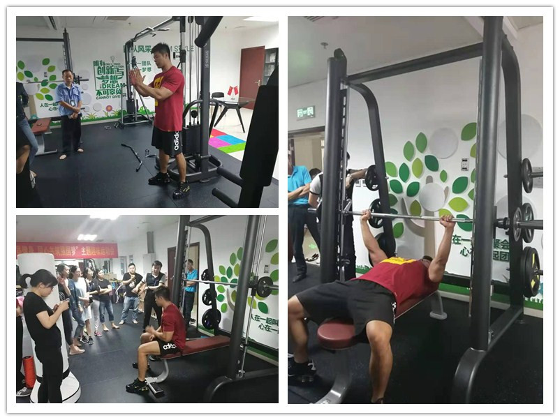2019年8月26日,南宁某集团职工健身房自6月在广西xc sports,xc采购室内健身器材以来,广西xc sports,xc根据其职工的男女比例及健身需求,为该集团员工提供健身教练上门免费培训健身器材使用及提供健身知识讲座,科学的运动教学指导。经过有趣互动交流,让职工在轻松愉悦的气氛下感受到运动的乐趣。